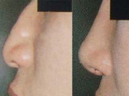 根据国内资料及临床经验,中国人的驼峰鼻一般较外国人轻,鼻背较宽,鼻翼宽大,鼻尖过长者,较西方人少得多,多数人通过凿除驼峰,即可矫正。除非鼻背明显增宽者,一般并不需要用鼻锯锯开上颌骨与鼻骨的连接,使鼻骨重新组合,形成新的鼻锥,有的只需用骨锉稍加修整;对于整体观察鼻背不高者,还可以充填“L”形固体硅橡胶鼻假体,使鼻形得到矫正。